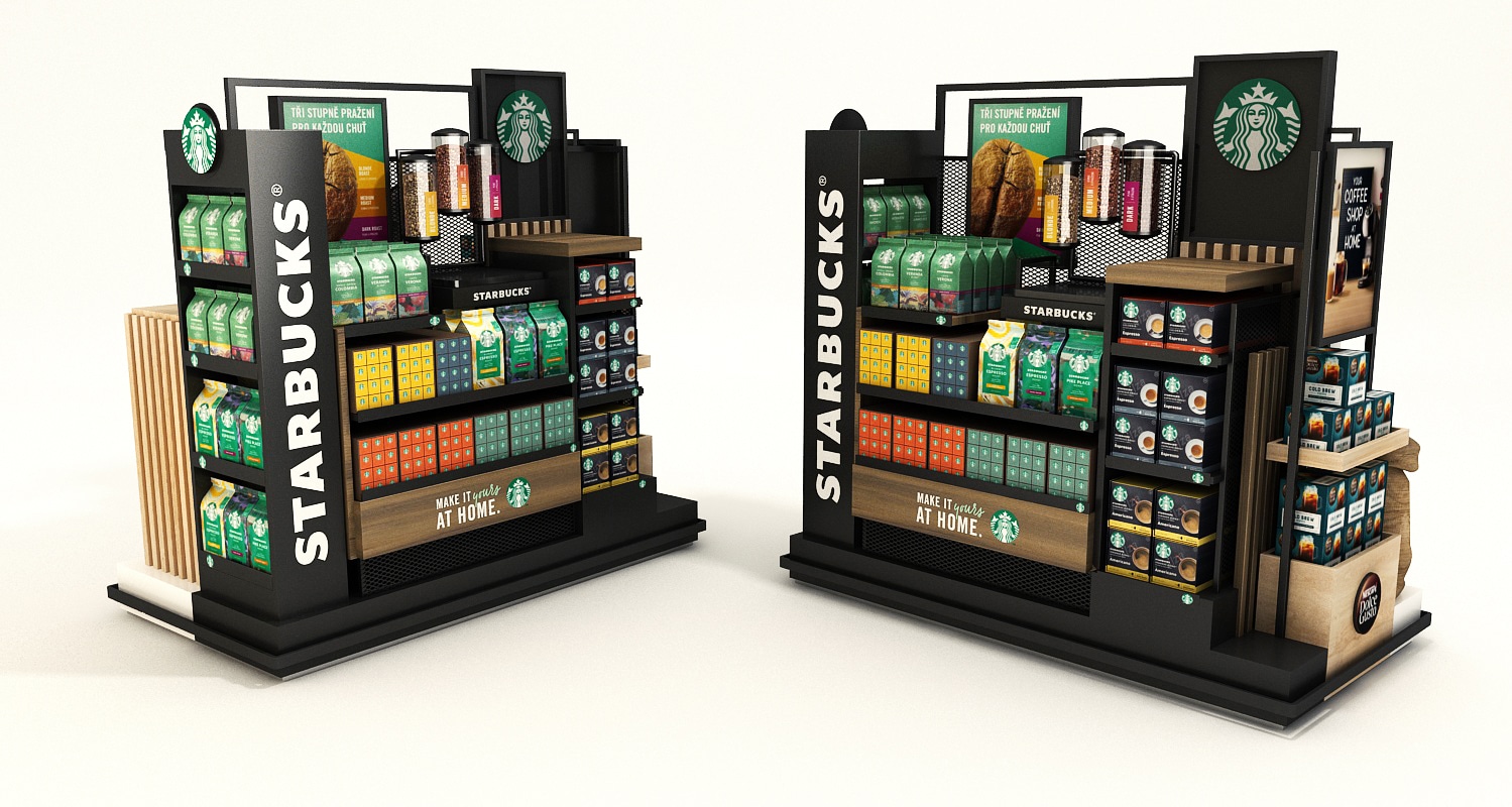 Realizácia bola vytvorená na mieru spoločnosti Nestlé na prezentáciu kompletného sortimentu kávy. Kontrastné farby vystavenia od seba elegantne oddeľujú brandy Starbucks a Nescafé Dolce Gusto. Čistota stvárnenia, kombinácia prvotriednych materiálov a reálne jutové vrece plné zrnkovej kávy dokresľujú príjemnú atmosféru domácej kaviarne.