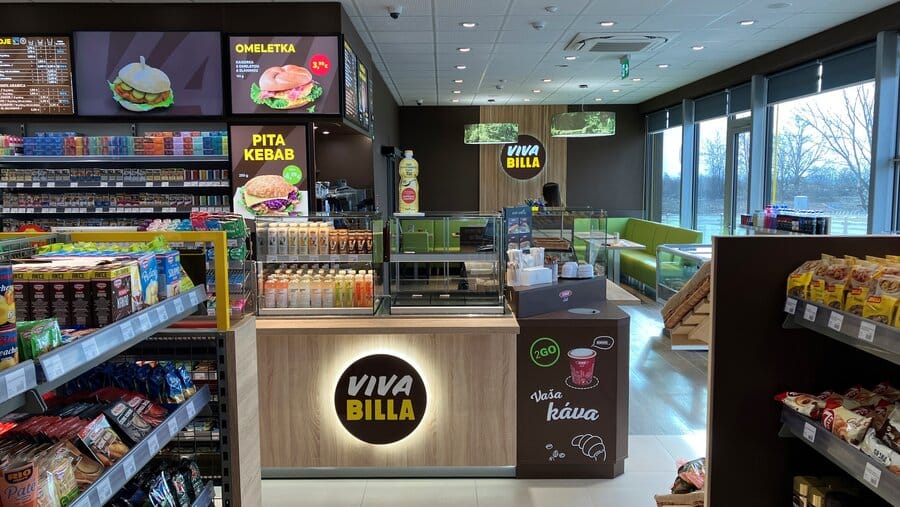Denne tu nájdu široký výber čerstvých a kvalitných potravín od pečiva, cez mliečne, trvanlivé a mäsové výrobky po základné druhy zeleniny a ovocia. Koncept VIVA BILLA zákazníci využívajú najmä pre rýchly nákup popri tankovaní na ceste domov alebo počas sviatkov.